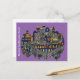 I took a photograph of a hand painted, handmade ceramic plate. These are popular items made by the Armenians en Israël. This plate shows the Old City of Jerusalem, Israël, colorfully painted and against a purple background. The title on the front and description on the back of the postcard are both form form, making it easy for you to reword these if you please.