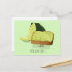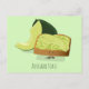 Carte postale avec un morceau de sourire de pain grillé d'avocat avec des avocats derrière lui. Le texte peut être customisé.