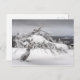 Icy et pin tordu enneigé au sommet d'une chute en Laponie, Finlande sur carte postale hivernale dramatique