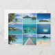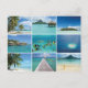 Carte postale avec collage de multiples images des plages des îles du Pacifique de Polynésie française, comme Tahiti, Moorea, Bora Bora et Rangiroa. Voir aussi :