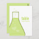 Mariage Whimsical Quirky et chic Numéro de table Carte postale en vert citron avec un amusant bécher de laboratoire avec des bulles et des coeurs. Cette carte postale mariage à thème scientifique est un choix idéal pour un couple avec une chimie parfaite qui veut quelque chose d'amusant et unique! Facile à customiser, il suffit d'ajouter le numéro de table approprié. Cliquez sur le bouton "Customiser" pour trouver d'autres options de personnalisation.