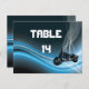 Carte postale de la table mariage Blue road, avec une moto sur un dégradé abstrait bleu, blanc, noir arrière - plan et un maillage blanc. Certains éléments sont offerts par Clipartandfonts.com.