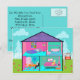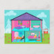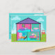 Cette carte postale personnalisable Dream House Real Estate Agent apportera une touche de fantaisie à votre entreprise. Le dessin est composé d'un dessin d'une maison de poupée classique pour enfants. La maison de poupées de deux étages montre l'idée de glamour de chaque petite fille. Murs et sol rose et turquoise dans la cuisine, réfrigérateur rose clair, table et chaises orange, horloge bleu, starburst. L'homme de la maison est assis à la table en profitant d'un peu de temps d'arrêt. Son costume noir et ses cheveux jaunes sont visibles derrière le journal du matin. Sur la table, on trouve un succulent gâteau à trois couches avec glaçage rose et chocolat. Dans le salon adjacent, une superbe femme blonde platine est posée sur un canapé rose chaud. Elle a l'air d'une poupée vivante dans sa robe jaune impétueuse, parfaite pour profiter du feu dans la cheminée à cônes roses. Sur le sol turquoise, un tapis imprimé zèbre. Un ottoman orange est également présent dans la chambre. Les murs sont en mousse de mer verte et en brique rose. Un luminaire Spoutnik jaune pendent du plafond. Derrière le canapé, se trouve l'oeuvre encadrée d'une chaussure en stiletto rose. A l'étage, on peut voir la suite master. La chambre poursuit la décoration turquoise et rose qui est si répandue dans la maison. Un lit vert mousse de mer avec une literie violette. A côté du lit, une paire de chaussures roses en stiletto sont visibles. Sur le mur, il y a quatre gravures pop art de la dame de la maison. Dans le coin de la chambre, une grande lampe de sol, jaune et bleu, moderne du milieu du siècle. La salle de bain est carrelée de bleu turquoise et rose et dispose de toilettes rose clair et d'une baignoire de pied de griffe. Le mur vert mousse de mer est compensé par la bordure en papier peint floral turquoise et rose. Les résidents n'ont pas besoin de s'inquiéter de faire des améliorations et de l'entretien dans cette maison. Les bardeaux violets sur le toit sont étanches à l'eau ! La maison est assise sur une pelouse verte parfaitement entretenue avec des fleurs roses et jaunes. Il y a une clôture blanche derrière la maison de rêve. Une ligne d'horizon d'aqua n'est marquée que par les silhouettes de nuages fluides et bleu clair et de cèdres. A côté de la maison, il y a un panneau rouge à vendre sur un poteau blanc. Et, bien sûr, la caractéristique la plus notable est le mot "SOLD" sur le panneau ! De l'autre côté, on trouve un arrière - plan d'aqua et beaucoup de place pour personnaliser.