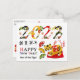 Large 2022 est décoré de fleurs de maman et de prune avec des pins symbolisés et des fleurs de prune dans le dos. Et la poupée de Tigre mignon au bas de la carte. Le kanji au milieu signifie "Bonne année" et il dit "Kinga Shin-nen" en japonais. Tous les textes à l'arrière sont personnalisés. C'est une illustration numérique.