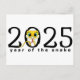 2025 est l'année du serpent ! Célébrez avec ce design mettant en vedette "2025" et un serpent de dessin animé mignon dans le 0. Au dos de la carte postale se trouve un serpent, un sac rouge et des pièces d'or.