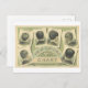 Cette carte postale est la reproduction d'un diagramme lithographique vintage de coupe de cheveux montrant différentes coiffures pour hommes.