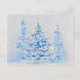 Une aquarelle, des lumières de Noël dans les pins enneigés. Tableau original imprimé sur une carte postale, oeuvre de Kristina Anderson