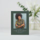 Avec sa photo verticale unique et sa typographie simple et classique, cette faire-part de remise de diplômes et carte postale d'invitation est le moyen idéal de partager vos nouvelles diplômées avec vos amis, votre famille et votre invitation à une célébration de remise de diplômes. Convient aux garçons et aux filles, il fonctionne aussi pour les diplômes de l'université et du secondaire. La couleur arrière - plan verte de chasseur classique est modifiable en cliquant sur "customiser plus loin" et cette conception est disponible dans d'autres formats dans le cadre de la collection Lea Delaveris Design Simple Classic graduation.