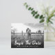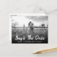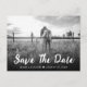 Carte postale de mariage à date à sauver avec photo rustique avec une photo à fond perdu et une police d'écriture rustique. Personnalisez facilement cette carte postale de date de mariage avec votre photo et les détails de votre mariage.