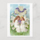 Carte Postale De Mignons Anges Avec Croix Et Fleurs.