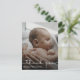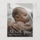 Carte postale moderne d'annonce de naissance de bébé. Conception avec un script de remerciement, une seule photo du bébé, des statistiques de naissance, une date et un nom sur le devant. Personnalisez avec une autre photo et votre message de remerciement au dos.