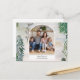 Carte photo de vacances peint à la main avec un accueil personnalisé le long d'une illustration de la forêt hivernale.