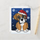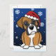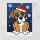 Envoyez des cartes postales de Noël Boxer à tous vos amis amoureux des animaux cette année! Un mignon dessin animé kawaii Boxer est accroché à la neige fraîchement tombée, portant un casquette Père Noël, tandis que des flocons de neige dérivent doucement autour de lui.