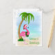 Carte postale de Noël Pink Flamant rose Palm Tree