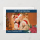 Photos de famille Poinsettia Carte postale de Noël avec année et élégant clip bleu marine et blanc floral.