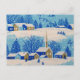 Scène de neige vintage du milieu du siècle, élégante, minimaliste, en bleu blanc et or pour vous mettre dans l'ambiance des vacances.