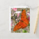 Le papillon du Golfe Fritillaire boit du nectar de fleurs de salvia rose sur cette carte postale.
