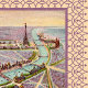 Cette image élégante et inhabituelle de carte de commerce victorienne, baignée dans une belle couleur lavande, décrit l'aménagement de l'Expo 1900 à Paris, France. Une collection de bateaux se déplace paresseusement le long de la Seine bleu aquamarine. Un ciel rose coloré complète les couleurs lavande douces de l'illustration centrale.
