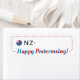 Carte postale Carte postale NZ Nouvelle-Zélande Étiquettes de poste-croisières avec message Happy Postcross! Signet : ©︎ EmojiOne (sous licence CC BY 4.0)