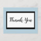 Une carte postale de remerciement script simpliste en noir et blanc. La couleur de fond bleue peut être changée en n'importe quelle couleur que vous préférez.