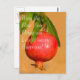 Une grenade presque-mûre simple honore la couverture de cette carte. La grenade symbolise la prospérité et l'abondance parce que quand vous l'ouvrez vers le haut de vous ayez une multitude de graines savoureuses et nutritives qui peuvent utilisé de tant de manières : en salades, jus ou cuit avec d'autres plats. Quel symbole merveilleux pendant la nouvelle année juive ! L'avant de la carte indique : Mai la nouvelle année vous apportent un bon nombre de surprises heureuses. Sur le dos est une image d'une grenade ouverte.