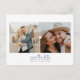 Cette carte postale simple et épurée de sauvegarde de date dispose d'espace pour deux photos avec un cœur simple au centre.