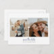 Cette carte postale de sauvegarde de date simple et épurée comporte un espace pour deux photos avec un cœur simple au centre.