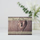 Carte postale de sauvegarde de date avec serrure en forme de cœur en métal sur une porte en bois rustique.