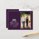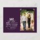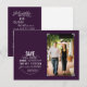 Annoncez votre jour spécial avec cette simple carte postale de sauvegarde violette moderne avec un cercle contenant du texte blanc et une photo dans des coins de photo gris. Pas besoin de recadrer votre photo, il suffit de la glisser derrière le fond violet et vous êtes prêt à partir. Les coins de photo et le fond violet sont amovibles. Des schémas de couleurs personnalisés sont disponibles sur demande.