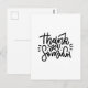 Carte postale de typographie de remerciement