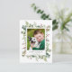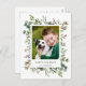 Cette carte de vœux est illustrée de baies rouges, de branches de pin, d'eucalyptus et de feuilles vertes peintes à l'aquarelle avec les mots « Joyeuses Fêtes ». Personnalisez-la en changeant l'image avec votre propre photo et texte.