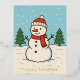 Carte postale de Noël en papier mignon avec une illustration amusante de bonhomme de neige avec le message d'accueil modifiable "Happy Holidays".
