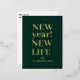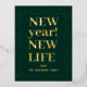 Nouvel An Nouvelle vie, carte postale de feuille de vacances. Caractéristiques de la typographie moderne chic en feuille vert foncé avec une seule photo à l'avant.