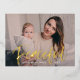 Carte postale de vacances moderne avec votre photo horizontale avec "Paiseful" affichée dans une feuille d'or lettrée main brosse de script. Personnalisez la carte postale des fêtes en ajoutant votre nom et l'année. L'arrière de la carte postale affiche votre adresse de retour et votre message personnalisé.