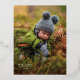 Cette carte postale présente une photo de famille à fond perdu et un calque d'écriture "joie", avec des détails en paillettes et un espace pour un message de famille au verso de la carte.