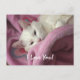 Chat blanc sur le timbre rose de couverture de coeur pour des Valentines. Carte postale de Valentine