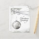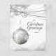 L'avant de cette carte postale est en argent avec des flocons de neige, des rubans et les mots : voeux de Noël. Sur le dos il dit : Puisse cette saison de Noël et le Nouvel An à venir, remplissez vos coeurs de chaleur, d'amour, de rire, de foi et d'espoir. C'est une carte sophistiquée qui souhaite à vos proches toutes les bénédictions du monde.