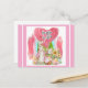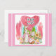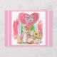Carte Postale De Pâques À Brosse En Rose Avec Lapin De Pâques Et Panier D'Oeufs