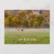 Carte de vœux de rétablissement avec un couple d'élans paissant dans un champ par un matin froid d'automne avec du brouillard persistant. Le grand élan mâle mange de l'herbe tandis que la femelle observe. Cela se passe dans la vallée de Boxley, Arkansas, États-Unis.
