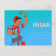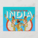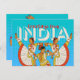 Carte postale India Travel illustrée en bleu, moutarde et rouge