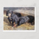 Carte Postale Deux Dachshunds avec Bone Hermine Biedermann