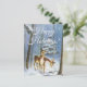 Belle carte postale d'art vintage restaurée, deux jeunes cerfs avec des taches marchant à travers la neige et les arbres d'une forêt sombre et fraîche. Entièrement personnalisable.