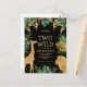 Cette carte postale "deux sauvages" safari dans la jungle thème de deuxième anniversaire invitation à la fête comprend des animaux en fausse feuille d'or (girafe, lion et singes), le feuillage de l'or et de la jungle verte, et un arrosage de confettis d'or sur un arrière - plan noir. Ajoutez le nom du garçon ou de la fille d'anniversaire et les détails de la fête en texte noir sur le devant et votre adresse de retour au verso.