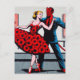 Carte Postale Devil danse avec une femme en robe rouge florale