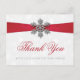 La collection de mariages de rubans rouges et de flocons de neige diamante est parfaite pour tout couple qui planifie une célébration de mariage d'hiver romantique. Le design comprend un arrière - plan texturé gris argenté clair et blanc avec un flocon de neige diamante sur un ruban soyeux. Le libellé intègre les mêmes couleurs gris argenté et rouge du design et peut être facilement personnalisé pour répondre à votre événement spécial. *Veuillez noter que Zazzle ne vend que des articles imprimés afin que ces cartes postales de remerciement n'aient pas de vrais flocons de neige ou de rubans de diamant.