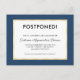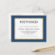 Vous avez besoin de reporter ou d'annuler votre événement? Envoyez cette carte postale pour informer vos invités du changement de plan. Le design simple est accentué par une bordure bleu foncé et or.