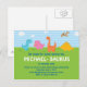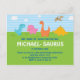 Cette simple carte postale avec de mignons invitations de dinos pour passer à la fête de votre petit.