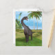 rendu numérique 3D d'un dinosaure Brachiosaurus sur l'arrière - plan du ciel bleu et des palmiers verts