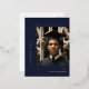 Design moderne, Gold Foil Photo Graduation Merci Carte postale en bleu marine.