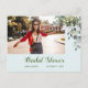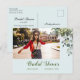 Invitation à une fête prénuptiale sous forme de carte postale avec photo.